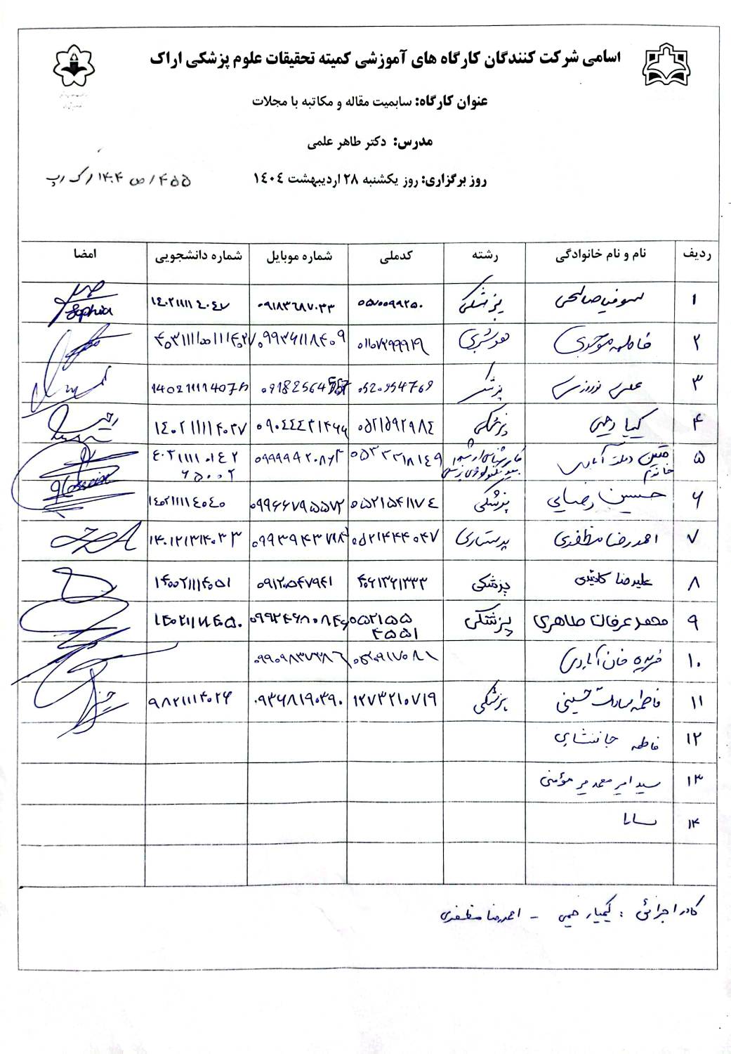 عنوان کارگاه زمان ساعت فایل آموزشی فرم نظرسنجی گروه هدف مدرس شرکت کنندگان عکس کارگاه