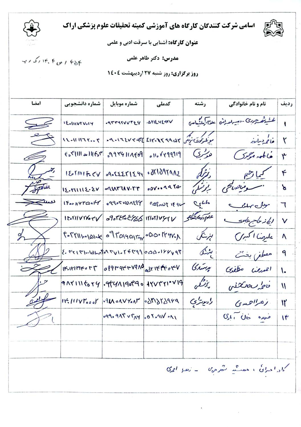 کارگاه دانشجویان و هیات علمی